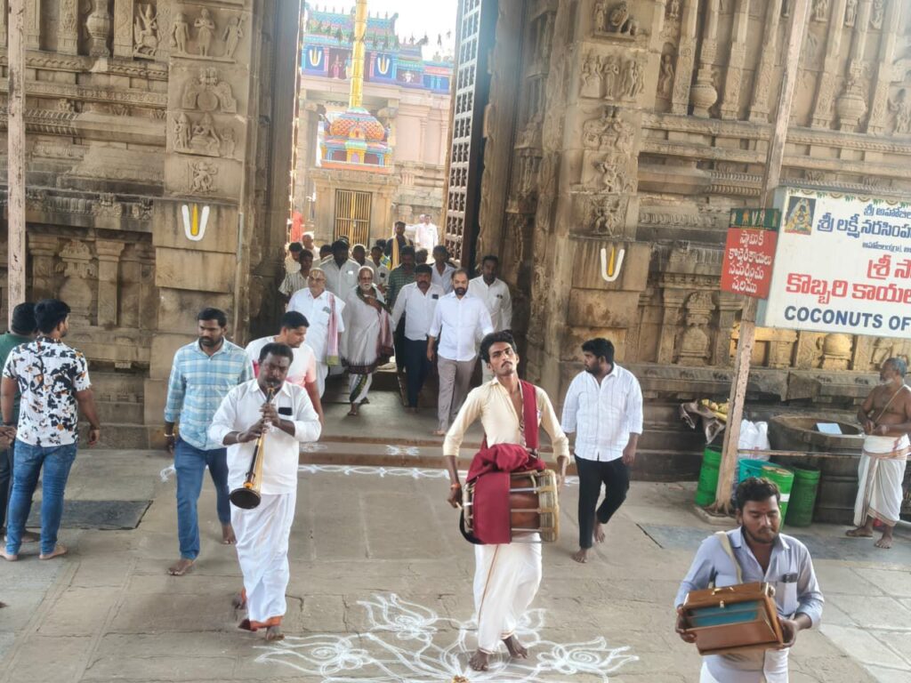 అనంతరం వేద పండితులు రంగమంటపంలో గంగులకు వేద ఆశీర్వచనం పలికి శ్రీ స్వామి వారి తీర్థప్రసాదాలు అందజేసి సత్కరించారు.