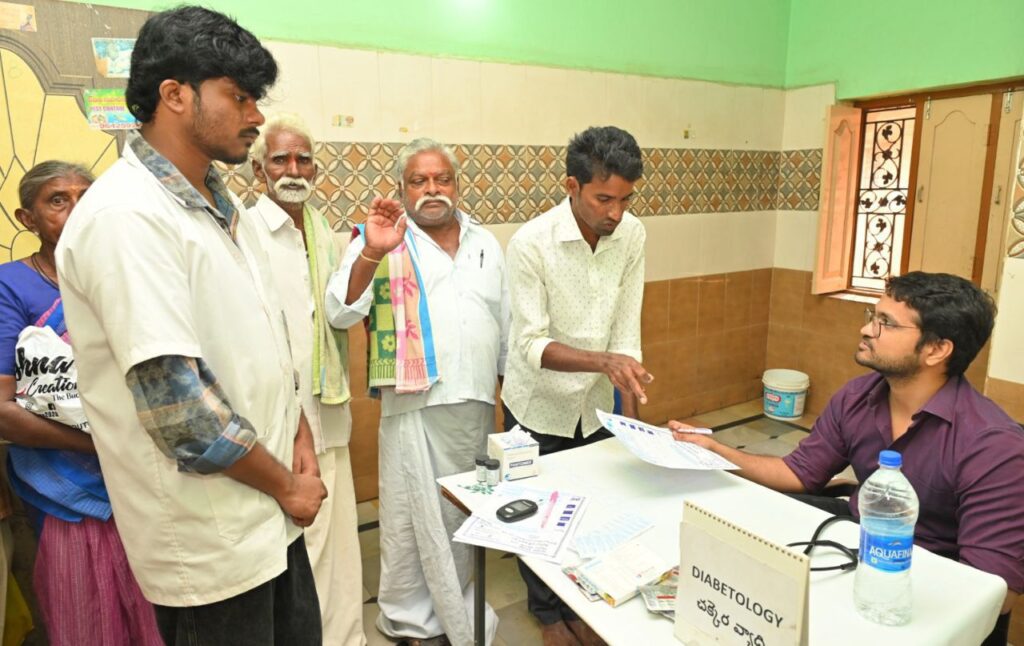 నంద్యాల జిల్లా ఆళ్లగడ్డ మండలం దిగువ అహోబిలం క్షేత్రంలో మంగళవారం వైకుంఠ ఏకాదశి పర్వదినం సందర్భంగా యోగివేమన రెడ్ల నిత్యాన్నదాన సత్రం ఆధ్వర్యంలో కమిటీ సభ్యులు అందరి సహాయ సహకారులతో ఉచిత మెగా వైద్య శిబిరాన్ని నిర్వహించారు. దేవస్థానం స్వాతి హాస్పిటల్ సౌజన్యంతో నిర్వహించిన వైద్య శిబిరంలో ఆళ్లగడ్డ వెంకటసుబ్బారెడ్డి హాస్పిటల్ M.D డాక్టర్ సారెడ్డి నరసింహారెడ్డి, డాక్టర్ శివ నాగేశ్వరమ్మ, ప్రముఖ ఆర్థోపెడిక్ సర్జన్ డాక్టర్ లక్ష్మి రెడ్డి, డాక్టర్ యశ్వంత్ రెడ్డి, డాక్టర్ హనీషా, డాక్టర్ చంద్రిక, డా. రామలక్ష్మి తదితరులు పాల్గొని రోగులకు ఉచిత వైద్య పరీక్షలు నిర్వహించి మందులను కూడా అందజేశారు. ఈ సందర్భంగా ఎండీ డా. నరసింహారెడ్డి మాట్లాడుతూ .. అహోబిలం కొండ ప్రాంతంలో ఉండడంతో ఎక్కువగా మలేరియా వ్యాప్తి చెందే అవకాశం ఉందని తెలిపారు. ప్రజలు దోమల బారిన పడకుండా తగు జాగ్రత్తలు తీసుకోవాలని ఆయన సూచించారు. ఈ వైద్య శిబిరాన్ని ప్రజలు సద్వినియోగం చేసుకోవాలన్నారు. సుమారు 1200 మంది పేషంట్లను వైద్యులు పరిశీలించి వైద్య చికిత్సలు అందించారు. అలాగే వైద్య శిబిరానికి హాజరైన రోగులందరికీ ఉచితంగా అల్పాహారం, భోజన సదుపాయాలను కూడా సత్రం యాజమాన్యం కల్పించారు. ఈ కార్యక్రమంలో మెడికల్ ఆఫీసర్ డాక్టర్ లిఖిత్ రెడ్డి, స్వాతి హాస్పిటల్ వైద్యురాలు డాక్టర్ సాయి తేజస్విని, ఫార్మాసిస్ట్ మధు సూదన్, సిబ్బంది అజయ్ కుమార్, కృష్ణా నాయక్ తదితరులు పాల్గొన్నారు.