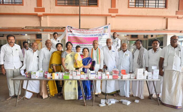 నంద్యాల జిల్లా ఆళ్లగడ్డ మండలం దిగువ అహోబిలం క్షేత్రంలో మంగళవారం వైకుంఠ ఏకాదశి పర్వదినం సందర్భంగా యోగివేమన రెడ్ల నిత్యాన్నదాన సత్రం ఆధ్వర్యంలో కమిటీ సభ్యులు అందరి సహాయ సహకారులతో ఉచిత మెగా వైద్య శిబిరాన్ని నిర్వహించారు. దేవస్థానం స్వాతి హాస్పిటల్ సౌజన్యంతో నిర్వహించిన వైద్య శిబిరంలో ఆళ్లగడ్డ వెంకటసుబ్బారెడ్డి హాస్పిటల్ M.D డాక్టర్ సారెడ్డి నరసింహారెడ్డి, డాక్టర్ శివ నాగేశ్వరమ్మ, ప్రముఖ ఆర్థోపెడిక్ సర్జన్ డాక్టర్ లక్ష్మి రెడ్డి, డాక్టర్ యశ్వంత్ రెడ్డి, డాక్టర్ హనీషా, డాక్టర్ చంద్రిక, డా. రామలక్ష్మి తదితరులు పాల్గొని రోగులకు ఉచిత వైద్య పరీక్షలు నిర్వహించి మందులను కూడా అందజేశారు. ఈ సందర్భంగా ఎండీ డా. నరసింహారెడ్డి మాట్లాడుతూ .. అహోబిలం కొండ ప్రాంతంలో ఉండడంతో ఎక్కువగా మలేరియా వ్యాప్తి చెందే అవకాశం ఉందని తెలిపారు. ప్రజలు దోమల బారిన పడకుండా తగు జాగ్రత్తలు తీసుకోవాలని ఆయన సూచించారు. ఈ వైద్య శిబిరాన్ని ప్రజలు సద్వినియోగం చేసుకోవాలన్నారు. సుమారు 1200 మంది పేషంట్లను వైద్యులు పరిశీలించి వైద్య చికిత్సలు అందించారు. అలాగే వైద్య శిబిరానికి హాజరైన రోగులందరికీ ఉచితంగా అల్పాహారం, భోజన సదుపాయాలను కూడా సత్రం యాజమాన్యం కల్పించారు. ఈ కార్యక్రమంలో మెడికల్ ఆఫీసర్ డాక్టర్ లిఖిత్ రెడ్డి, స్వాతి హాస్పిటల్ వైద్యురాలు డాక్టర్ సాయి తేజస్విని, ఫార్మాసిస్ట్ మధు సూదన్, సిబ్బంది అజయ్ కుమార్, కృష్ణా నాయక్ తదితరులు పాల్గొన్నారు.