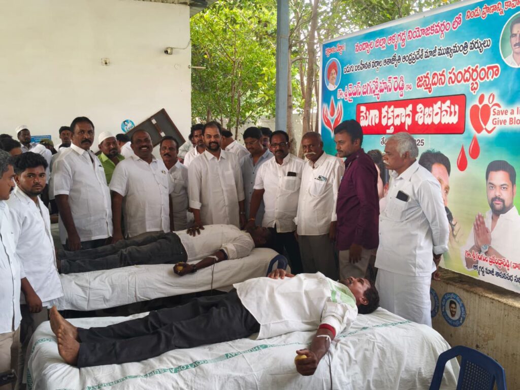 TEJANEWSTV :వైయస్సార్ కాంగ్రెస్ పార్టీ అధ్యక్షులు మరియు మాజీ ముఖ్యమంత్రి వర్యులు శ్రీ. వైయస్. జగన్ మోహన్ రెడ్డి గారి జన్మదిన సందర్భంగా ఆళ్లగడ్డలోని స్థానిక వైయస్సార్ కాంగ్రెస్ పార్టీ కార్యాలయంలో మన మాజీ శాసనసభ్యులు శ్రీ గంగుల బిజేంద్రారెడ్డి గారు వైఎస్ఆర్సిపి నాయకులు, కార్యకర్తలు మరియు గంగుల అభిమానుల మధ్య కేక్ కట్ చేశారు. అనంతరం రక్తదాన శిబిరం ఏర్పాటు చేశారు…..
