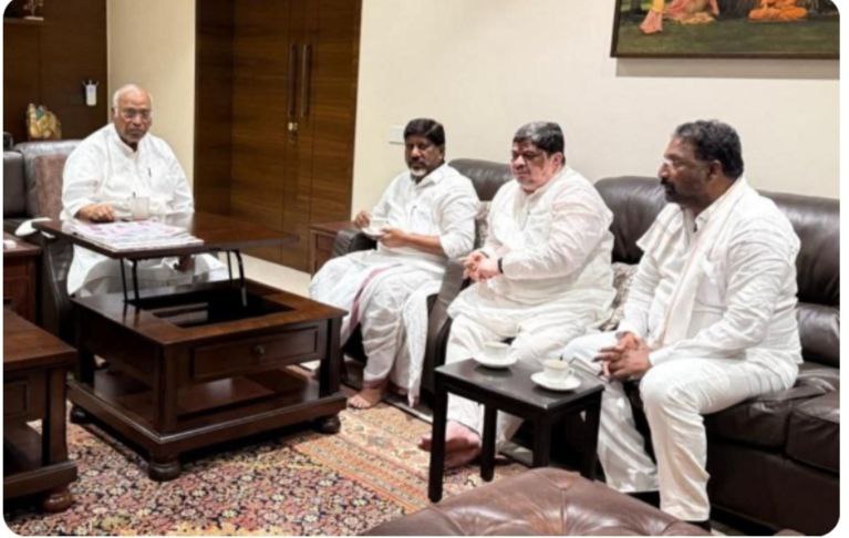 ఆలిండియా కాంగ్రెస్ కమిటీ (ఏఐసీసీ) అధ్యక్షుడు మల్లికార్జున ఖర్గేను సోమవారం సాయంత్రం బెంగుళూరులో తెలంగాణ ఉప ముఖ్యమంత్రి మల్లు భట్టి విక్రమార్క, మంత్రులు పొన్నం ప్రభాకర్, వాకిటి శ్రీహరి పరామర్శించారు.