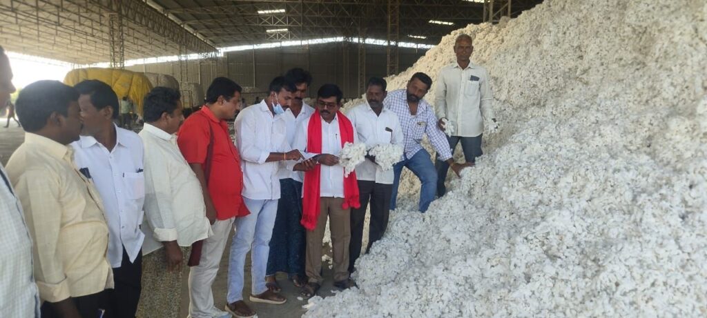 పత్తి కొనుగోలు కేంద్రాల్లో 12 శాతం తేమ పేరుతో రైతులను వేధించడం ఆందోళనకరమని, ఎకరాకు కేవలం 7 క్వింటాళ్ల మాత్రమే కొనుగోలు చేయాలనే నిబంధనను ప్రభుత్వం తక్షణం రద్దు చేయాలని సిపిఎం జిల్లా కార్యదర్శి మచ్చా వెంకటేశ్వర్లు డిమాండ్ చేశారు. శుక్రవారం సుజాతనగర్, చండ్రుగొండ, అన్నపురెడ్డిపల్లి, జూలూరుపాడు మండల కమిటీల ఆధ్వర్యంలో సిపిఎం బృందం డేగలమడుగు మంజీత్ కాటన్ మిల్లులోని పత్తి కొనుగోలు కేంద్రాన్ని పరిశీలించింది.