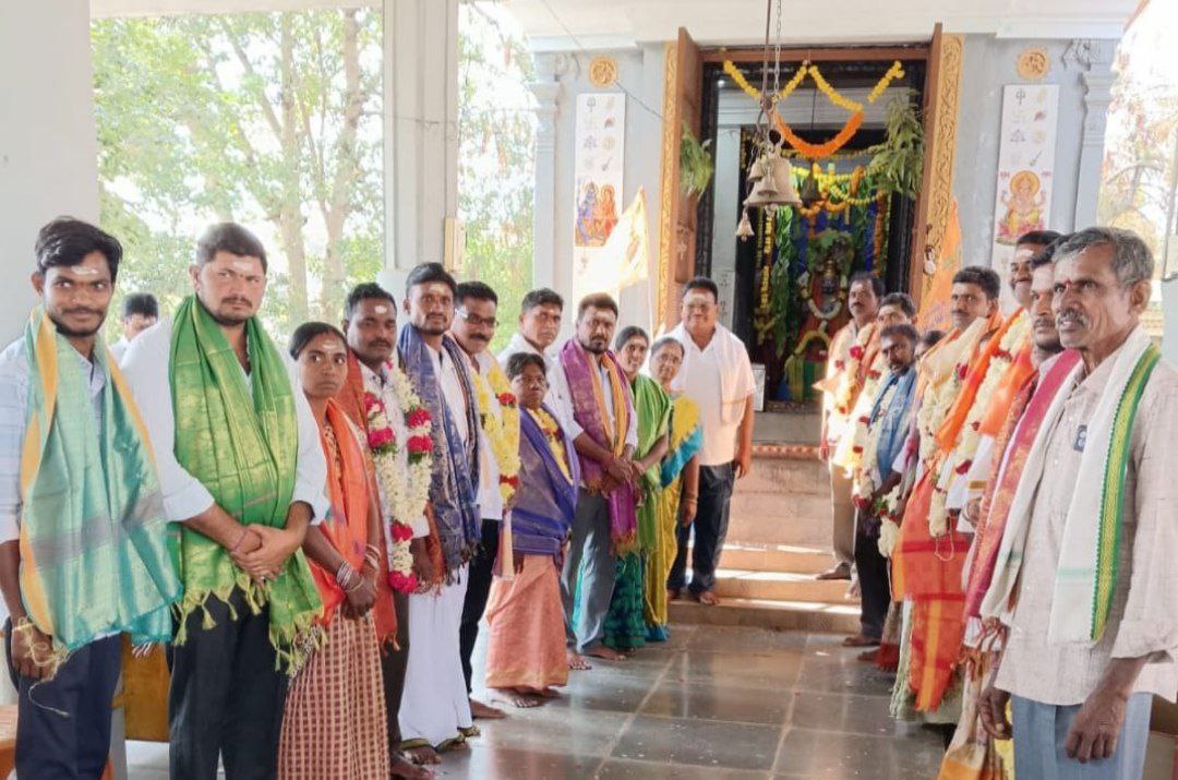 సంగెం మండలంలోని ఆశలపల్లి శివారులో పర్వతార మల్లికార్జున స్వామి దేవాలయం లో నూతనంగా ఎన్నుకోబడిన సర్పంచుల సన్మాన కార్యక్రమం మంగళవారం రోజు వైభవంగా జరిగింది ఉదయాన్నే సుప్రభాతం నవరస పంచామృత అభిషేకాలతో విశేషమైన అలంకరణలో పర్వతాల మల్లికార్జున స్వామి కొలువుతీరి దర్శనం ఇవ్వడం జరిగింది ఇట్టి కార్యక్రమంలో ఆలయ అర్చకులు కొడకండ్ల శ్రీనివాసచార్యులు . కొడకండ్ల శ్రీకాంత్ ఆచార్యులు ఆలయ చైర్మన్ కూచన సమ్మయ్య నూతనంగా ఎన్నికైన ఆశాలపల్లి సర్పంచ్ కొంగర మల్లమ్మ ఉప సర్పంచ్ బోలె బోయిన కవిత కిషోర్ యాదవ్, మరియు వార్డ్ నెంబర్లు గుంటూరు పల్లి సర్పంచి కందిమల్ల శ్రీకాంత్ దంపతులు, ఉపసర్పంచ్ దండ నరేష్ దంపతులు, కోట వెంకటాపురం సర్పంచ్ తాళ్లపల్లి శ్రీనివాసు, ఉప సర్పంచ్ న్యాల ఉమేష్ యాదవ్, కాపుల కనపర్తి సర్పంచ్ సధిరం చంద్ర మౌళి , గవిచర్ల సర్పంచ్ బసిపాక సదయ్య, మరియు గుమ్మడి సంపత్ ఉపసర్పంచ్, మరియు ఆశలపల్లి గ్రామ ప్రజలు తదితరులు పాల్గొన్నారు.