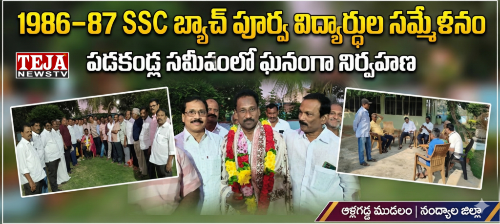 నంద్యాల జిల్లా ఆళ్లగడ్డ మండలం పడకండ్ల గ్రామ సమీపంలో అహోబిలం రోడ్డులో ఉన్న డాక్టర్ నరసింహారెడ్డి గార్డెన్స్ లో సోమవారం 1986-87 10 వ తరగతి బ్యాచ్ పూర్వ విద్యార్థులు సమ్మేళనం ఘనంగా నిర్వహించారు.