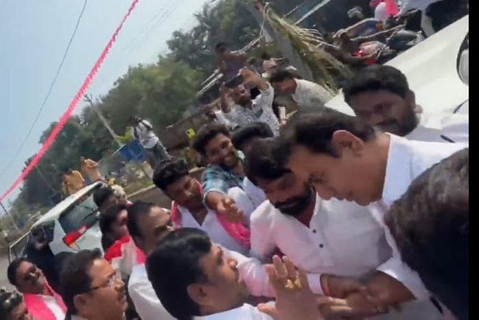 కొత్తగూడెం: జనవరి 7, జనవరి 7వ తారీకు కొత్తగూడెం తెలంగాణ భవన్లో గెలిచిన టిఆర్ఎస్ సర్పంచుల ఆత్మీయ సమ్మేళనం కార్యక్రమానికి రావలసిన ప్రోగ్రాం కమ్మానికి మార్చడంతో టిఆర్ఎస్ నుంచి గెలిచిన కొత్తగూడెం సర్పంచ్ ఉప సర్పంచ్ వార్డు నెంబర్లు కార్యకర్తలతో మాజీ మంత్రి కేటీఆర్ కు స్వాగతం పలకడానికి వెళ్లిన వారికి ఆశ్చర్యకర సంఘటన చోటుచేసుకుంది.. మాజీమంత్రి వనమా వెంకటేశ్వరరావు వనమా రాఘవేంద్రరావుని చూసిన కేటీఆర్ కారు ఆపి వారి వద్దకు వచ్చి యోగాక్షేమాలు అడిగి తెలుసుకున్న మాజీ మంత్రి కేటీఆర్. మాజీ మంత్రి కల్వకుంట్ల తారక రామారావు ని ఖమ్మం జిల్లా పర్యటనలో భాగంగా కూసుమంచి వద్ద భారీగా స్వాగతం పలికిన మాజీ మంత్రి వనమా వెంకటేశ్వరరావు వనమా రాఘవేంద్రరావు ను ఆప్యాయంగా పలకరించిన కేటీఆర్ బాగున్నారా పెద్దాయన అని కారు దిగి వనమా వెంకటేశ్వర వద్దకు వెళ్లి బాగున్నారా పెద్దాయన అంటూ యోగా క్షేమాలు అడిగి తెలుసుకున్న కేటీఆర్. కేటీఆర్ఏ స్వయంగా కారు ఆపి వనమా పెద్దాయన వద్దకి దిగిరావడంతో కార్యకర్తల్లో ఉత్సాహాన్ని నింపింది. జై కేసీఆర్ జై కేటీఆర్ జై వనమా అంటూ ఖమ్మం పట్టణం మారుమోగిపోయింది. దీనితో బి ఆర్ఎస్ లొ కొత్త ఉత్సాహాన్ని నింపినట్టు అయింది.