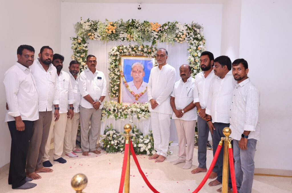 సిద్దిపేట ఎమ్మెల్యే శ్రీ తన్నీరు హరీష్ రావు గారి తండ్రి తన్నీరు సత్యనారాయణ రావు గారు ఇటీవలే మరణించిన గా సోమవారం రోజు హరీష్ రావు నివాసానికి వెళ్లి కీ.శే సత్యనారాయణ రావు గారి చిత్రపటానికి పూలమాలలు వేసి ఘనంగా నివాళులు అర్పించిన బిఆర్ఎస్ నాయకులు, పరకాల మాజీ ఎమ్మల్యే చల్లా ధర్మారెడ్డి,