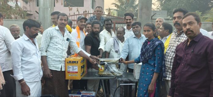 తెలుగుదేశం పార్టీ ఆలూరు ఇన్చార్జి వైకుంఠం జ్యోతి గారి సహకారంతో మహిళలకు 50% సబ్సిడీతో కుట్టు మిషన్లను టీడీపీ కన్వీనర్ డాక్టర్ తిప్పయ్య, జనసేన కన్వీనర్ అశోక్ బీజేపీ మండల కన్వీనర్ ఈ ప్రసాద్ ఆర్గనైజింగ్ సెక్రటరీ అబ్దుల్ సుబాన్,మండల ప్రధాన కార్యదర్శి గోవిందు గౌడ్, మైనార్టీ సీనియర్ నాయకులు ఆదం,మండల కార్యదర్శి హుసేన్ పీరా,సీనియర్ నాయకులు డి ఎస్ బాషా,, తెలుగుయువత మండల అధ్యక్షుడు బాకాడి వీరేష్ టీడీపీ సీనియర్ నాయకులు రైస్ మిల్ మురళి వైకుంఠం యువసేవ ల్యాబ్ గిరి మండల మైనార్టీ అధ్యక్షులు మోయిన్, ప్రధాన కార్యదర్శి అబ్దుల్ రెహ్మాన్,, కో కన్వీనర్ వరాల వీరేష్,46 బూత్ కన్వీనర్ టి పి సాయిబేష్ 38 బూత్ ఇంచార్జీ ఆలూరు వలి భాషా 40 బూత్ ఇంచార్జీ షాలి అమన్ 35 బూత్ ఇంచార్జీ తయార్ యూనిట్ కో క్లస్టర్ రారవి సిద్దు కోనేరు భాస్కర్ రమేష్ ఇంచార్జీ బోయ మల్లికార్జున తదితరులు మండల కేంద్రంలో స్థానిక రాజా నగర్ కాలనీలో మహిళలకు 30 కుట్టు మిషన్లను 50% సబ్సిడీపై అందించారు. ఈ సందర్భంగా వారు మాట్లాడుతూ కూటమిపాలనలో రాష్ట్రంలో అభివృద్ధితోపాటు, ప్రజా సంక్షేమంతో దూసుకెళ్తుందని తెలిపారు.ఆలూరు తెలుగుదేశం పార్టీ ఇంచార్జ్ వైకుంఠం జ్యోతి గారి ఆలూరు నియోజకవర్గం అభివృద్ధి, ప్రజా సంక్షేమానికి కట్టుబడి పని చేస్తున్నారని పేర్కొన్నారు. ఈ నేపథ్యంలో ఇన్చార్జ్ వైకుంఠం జ్యోతి గారి సహకారంతో సబ్సిడీపై మహిళలకు కుట్టు మిషన్లు అందజేయడం జరిగిందని తెలిపారు. కుట్టు మిషన్ లబ్ధిదారులు అయినా మహిళలు మాట్లాడుతూ బయట మార్కెట్లో 14 వేల ధర ఉన్న కుట్టు మిషన్ ను 50% సబ్సిడీతో 7000 రూపాయలకు అందించడం సంతోషదాయకమని,టిడిపి ఇంచార్జ్ వైకుంఠం జ్యోతి గారికి ధన్యవాదాలు తెలిపారు.ఈ కార్యక్రమంలో టిడిపి యువ కూటమి నాయకులు కార్యకర్తలు,మహిళలు పెద్ద ఎత్తున పాల్గొన్నారు.