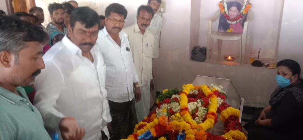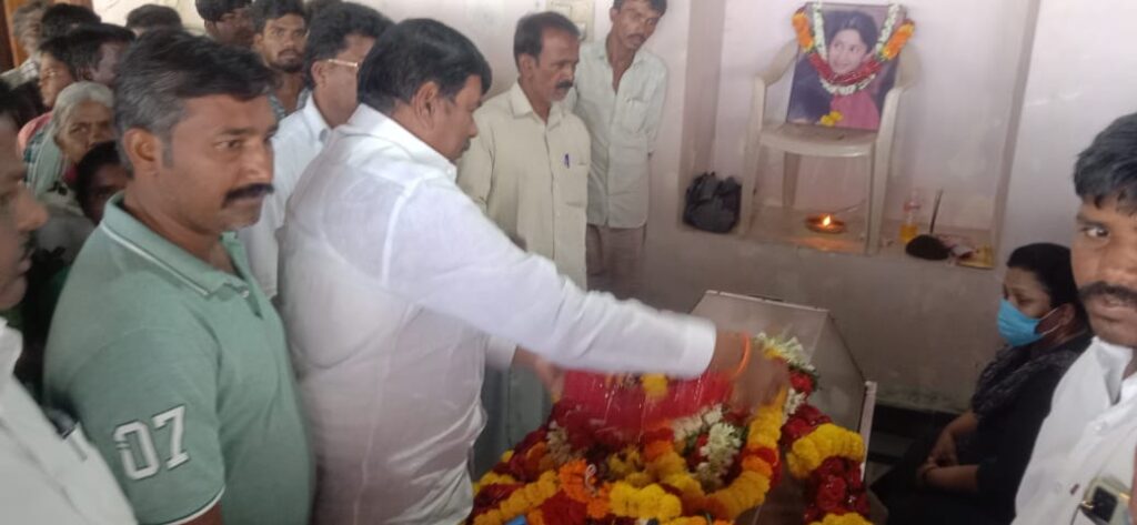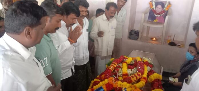 TEJA NEWS TV : ఆలూరు నియోజకవర్గం మాజీ శాసన సభ్యురాలు స్వర్గీయ శ్రీమతి నీరజ రెడ్డి నిన్నటి రోజున కారు ప్రమాదంలో మరణించిన నీరజ రెడ్డి భౌతికయాన్ని సందర్శించిన జడ్పిటిసి విరుపాక్షి తీవ్ర దిగ్భ్రాంతి వ్యక్తం చేస్తూ ఆమె పార్తివదేహానికి నివాళులర్పించి కుటుంబ సభ్యులకు మనో ధైర్యాన్ని ఇచ్చారు ఈ కార్యక్రమంలో వైయస్సార్ సిపి నాయకులు తదితరులు పాల్గొన్నారు.పంచాయతీరాజ్ వింగ్ అండ్ జోనల్ కర్నూలు నంద్యాల జిల్లా అధ్యక్షులు